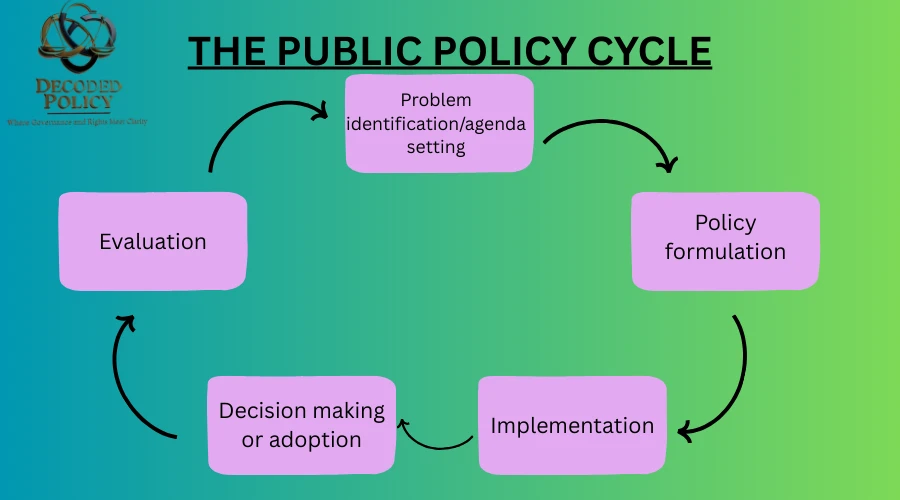 The policy cycle is a continuous, step-by-step process through which governments identify public problems and develop solutions. Some of its key steps are as follows: